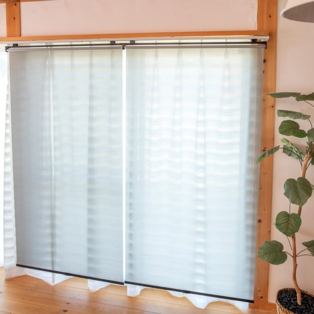 カーテン代わりに窓に使用することで、ドレープカーテンのようなウェーブが無く、フラットで軽やかな印象になります。光をお部屋に取り込みたい方に最適です。