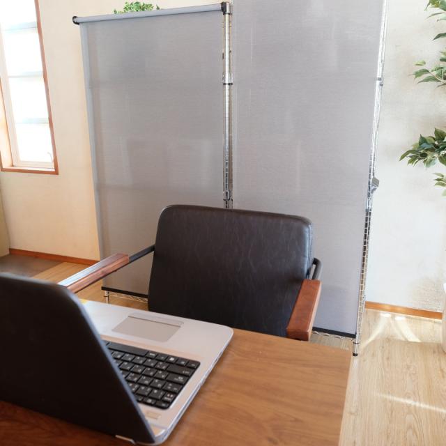 ロールスクリーンを降ろすだけでサッと目隠しできます。急な来客や在宅ワーク中のオンライン会議でも大活躍します。