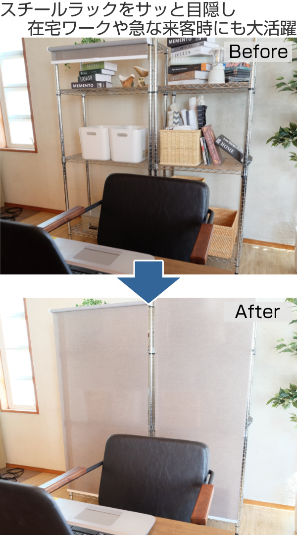※スチールラック用のロールスクリーンですので、カーテン代わりのご使用としては薄手の素材となります。ご了承ください。