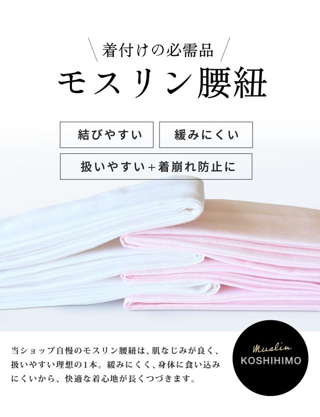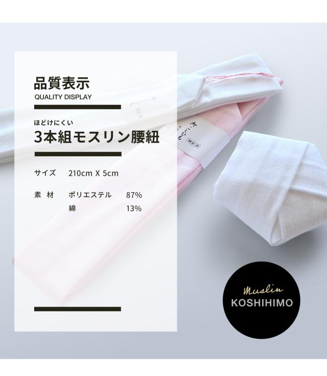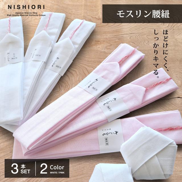 滑りにくい モスリン 腰紐 3本セット 並尺 白 ピンク こしひも 腰ひも 着着物 長襦袢 襦袢 浴衣 並尺 プロ御用達