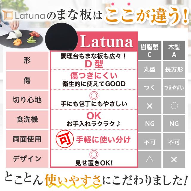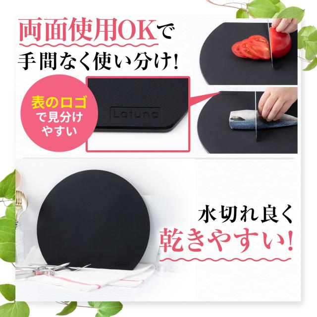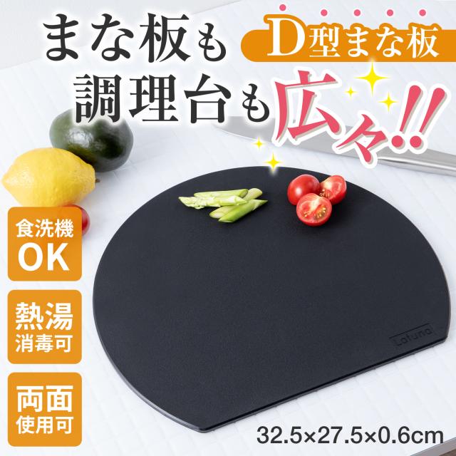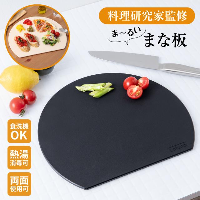丸いまな板 【料理研究家監修】 食洗機対応 エラストマー 丸型 スリム 耐熱 まないた D型 丸 半円 カッティングボード 多機能 かまぼこ型 32.5×27.5×0.6cm 黒 ベージュ 大きい 薄型 [Latuna] ギフト