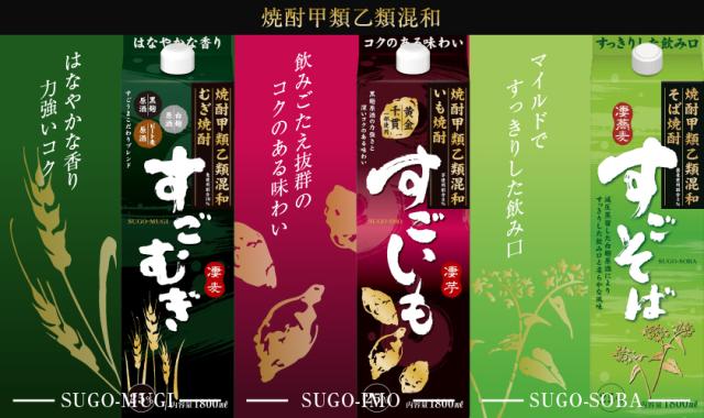 | すごいもCUPは、芋の力強い飲み応えにこだわり、芋の一部に黄金千貫(こがねせんがん)を使用した原酒と力強い味わいの黒麹原酒を使用した、芋の香り豊かな甲類乙類混和焼酎です。 力強いコクとキレの良い後味がお楽しみいただけます。 |