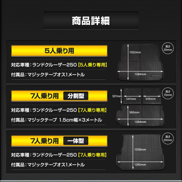 [対象商品タイムセール10%OFF][一部予約]ランドクルーザー250 専用 3D ラゲッジマット 5人乗り用 7人乗り用 選べる スポーツマット ランクル 250 防水 汚れ キズ 防止 トヨタ