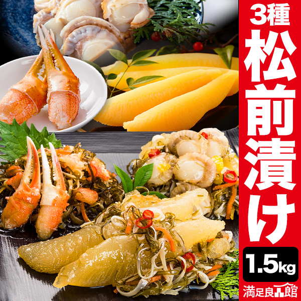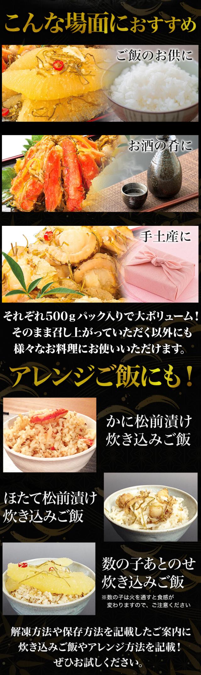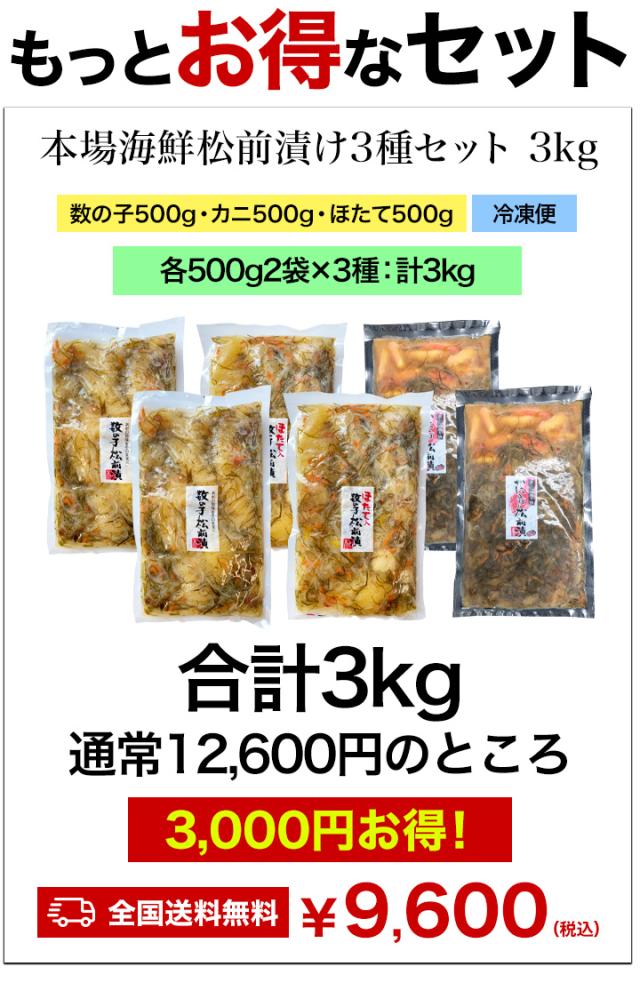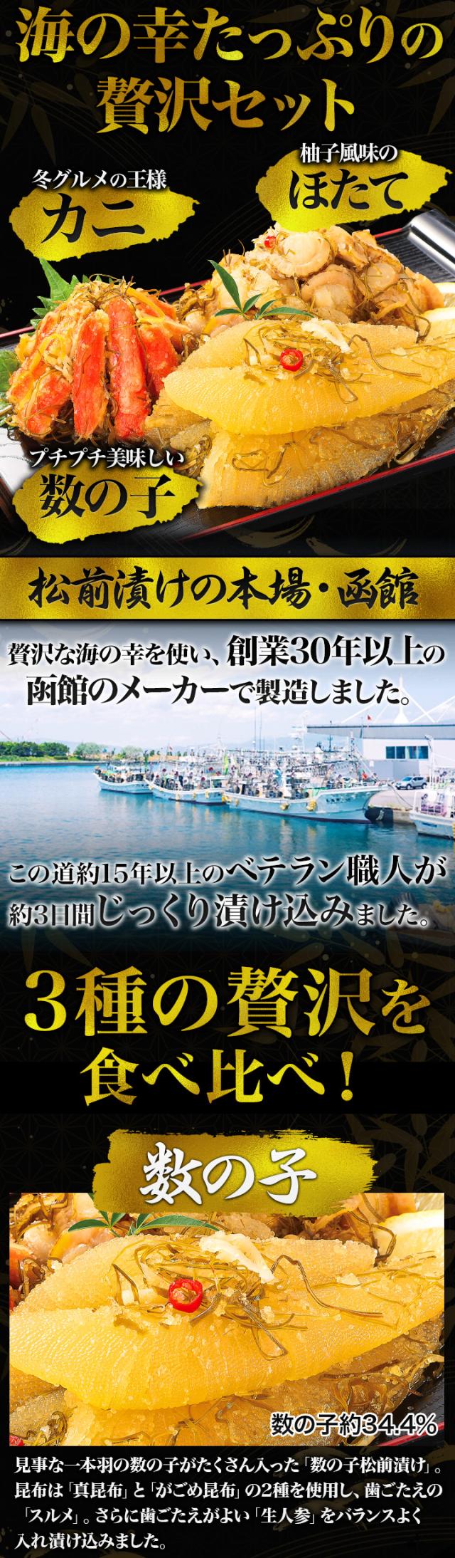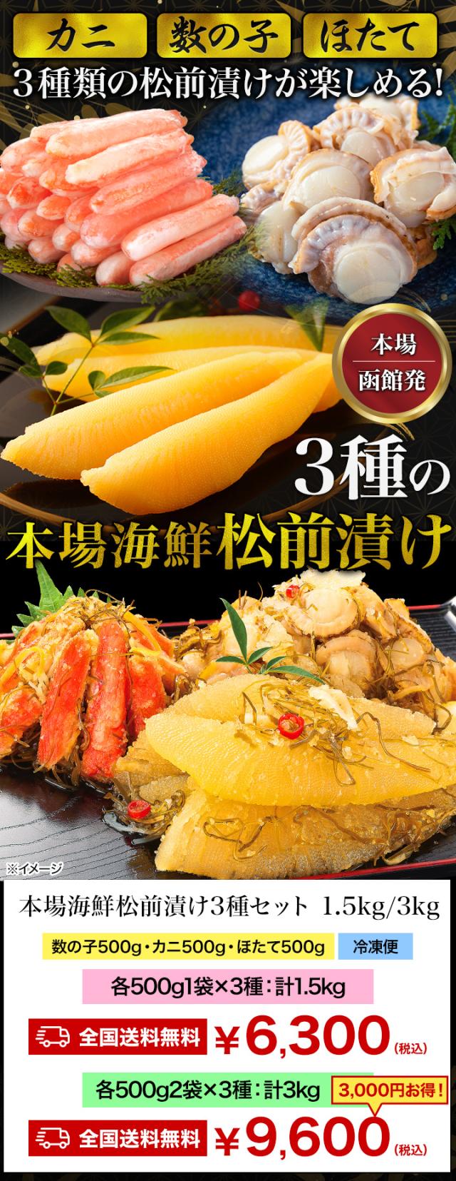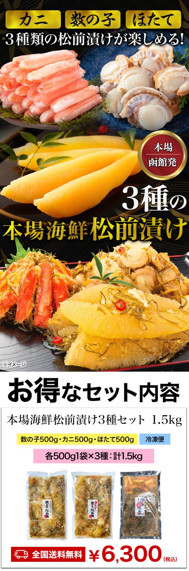 【お値引きクーポン配布中】1.5kg 本場海鮮松前漬け3種セット1.5kg 松前漬 数の子 かずのこ ほたて 帆立 ズワイガニ 昆布 函館 海鮮 送料無料