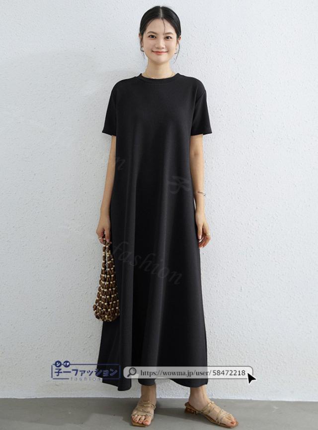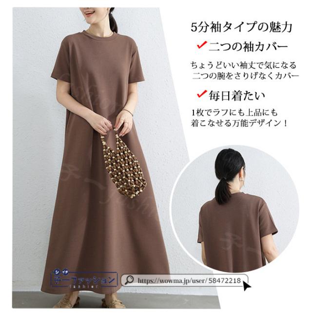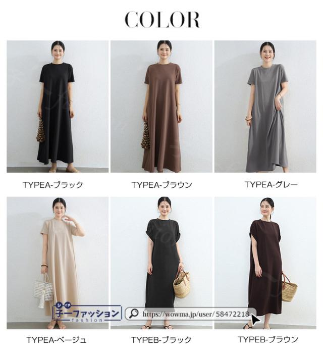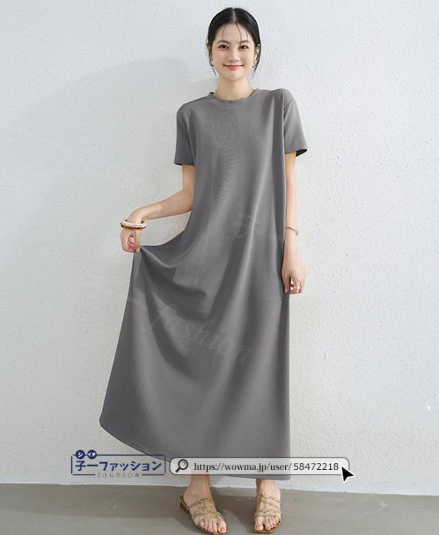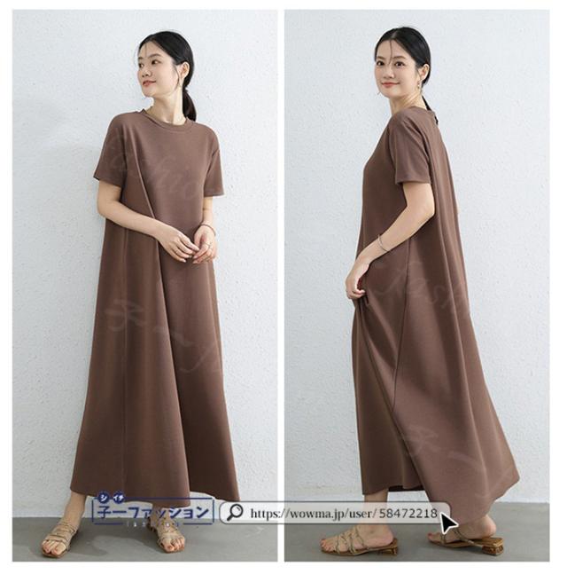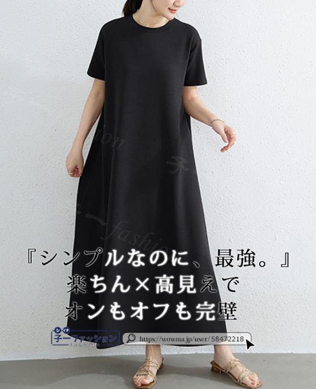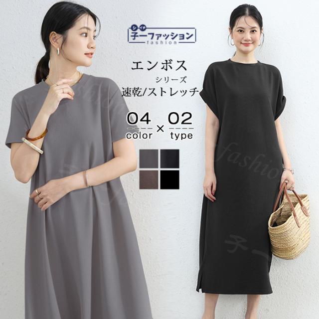 【二点目半額・クーポン利用で】 ワンピース ロングワンピース 選べる2タイプ マキシ丈 Aライン プルオーバー 無地 マキシワンピース 体型カバー シンプル 丸首 ラウンドネック 半袖 ゆったり 無地 薄手 レディース イージーケア 速乾 クルーネック ストレッチ 秋冬