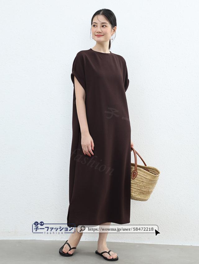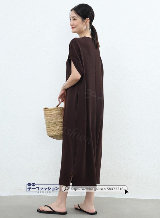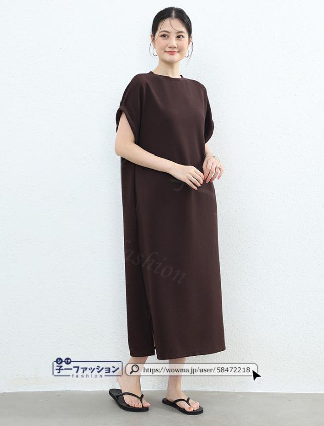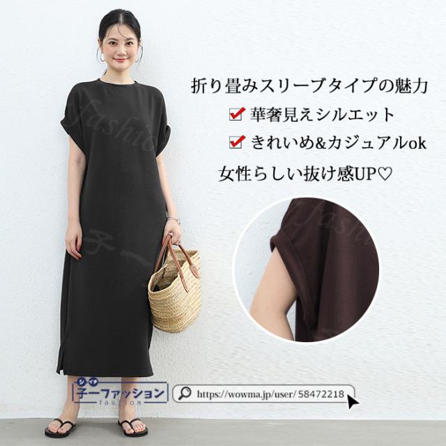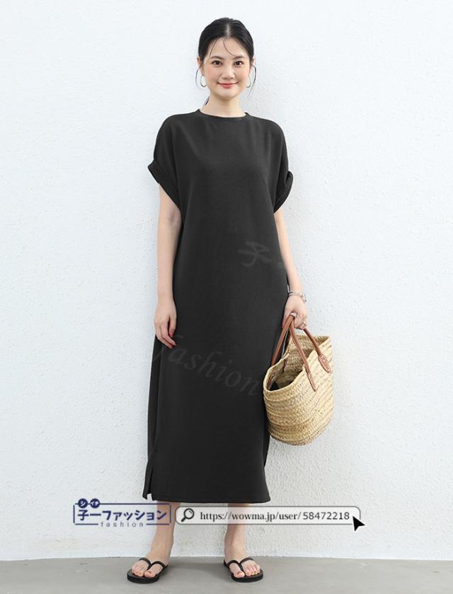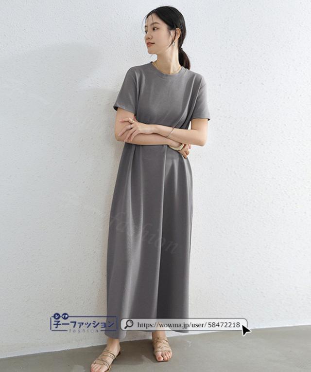 【二点目半額・クーポン利用で】 ワンピース ロングワンピース 選べる2タイプ マキシ丈 Aライン プルオーバー 無地 マキシワンピース 体型カバー シンプル 丸首 ラウンドネック 半袖 ゆったり 無地 薄手 レディース イージーケア 速乾 クルーネック ストレッチ 秋冬