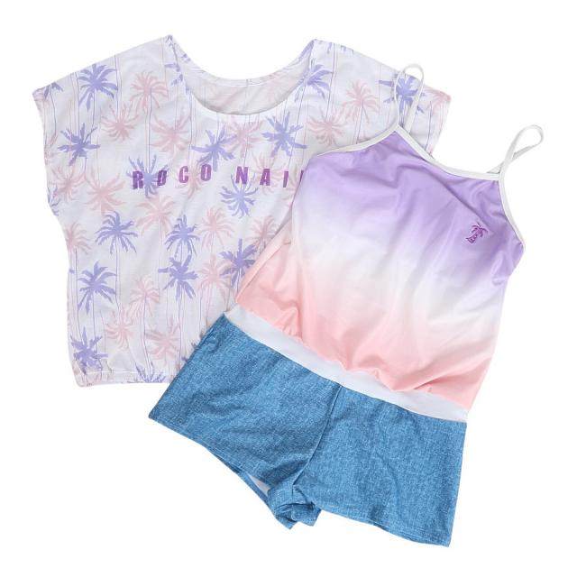 ロコネイル(ROCO NAILS)水着 ジュニア 女の子 ロンパース Tシャツ付 2点セット 363351-23PNK(Jr)