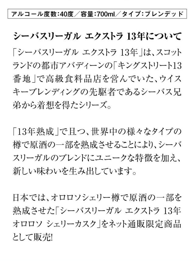 シーバスリーガル 13年 エクストラ オロロソ シェリーカスク 700ml 40度 正規品 スコッチ ブレンデッド ウイスキー 長S