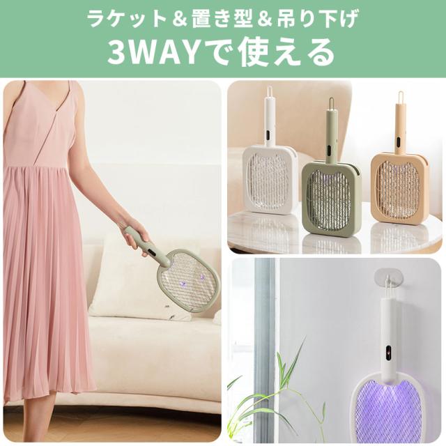 充電式 オシャレな電撃殺虫ラケット 3色選べる 電撃殺虫器 虫捕り器 蚊取り器 虫よけ 虫除け 蚊 コバエ ハエ 電気 UV光源誘引式虫捕り器 殺虫 電気 電流 電撃 害虫駆除 ラケット 置き型 吊り下げ 屋内 屋外 超静音 家庭用