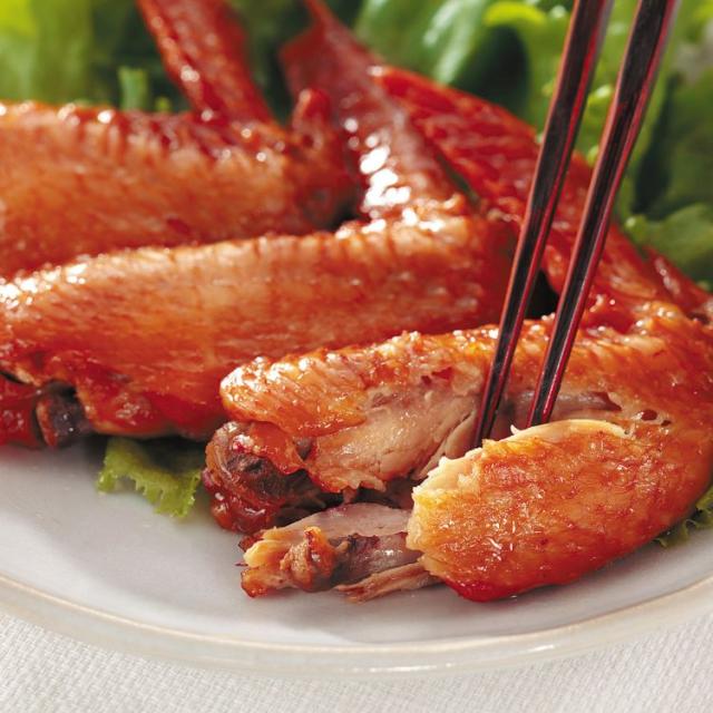 国産手羽先に昆布だしの旨みをたっぷり染み込ませた煮手羽
