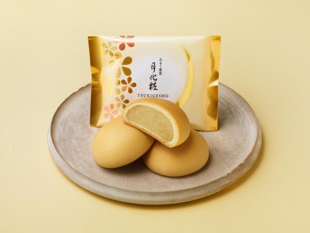 満月のようにまんまるく焼き上げたみるく饅頭「月化粧」。