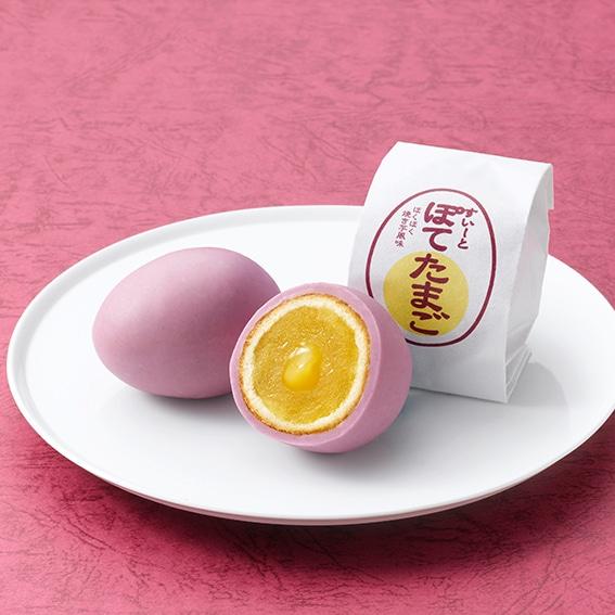 徳島県産さつま芋「鳴門金時」をしっとり風味豊かに仕上げたさつま芋あんを、紫芋を混ぜ入れたホワイトチョコとカステラ生地でくるんとかわいい玉子の形にくるみました。