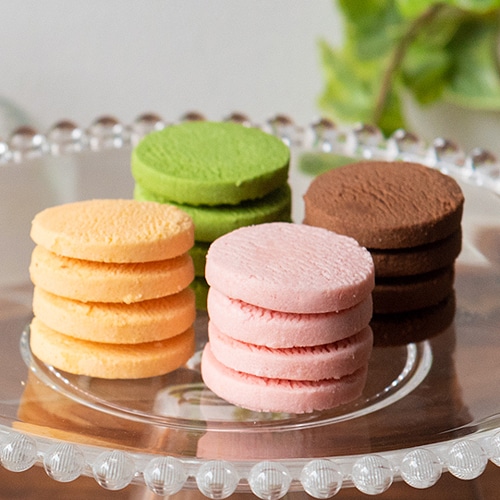 創業明治23年・和菓子屋がつくる新食感チョコクッキー。クーベルチュールチョコレートと米粉で焼き上げたクッキーは、米粉・葛粉の和素材を使用。ほろっとした食感と贅沢なチョコレートの味わいをお楽しみ下さい。フレーバーは、「静岡苺」「静岡抹茶」「三ケ日みかん」「チョコ」の4種類(各4枚)です。