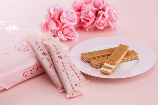 「名古屋を盛り上げるお菓子をつくりたい」という思いから、会話のきっかけ作りになるお土産菓子として開発されました。クーベルチュールホワイトチョコを香ばしい薄焼きクッキー生地でサンドし、スティック状にカットしたなごやのお土産菓子です。