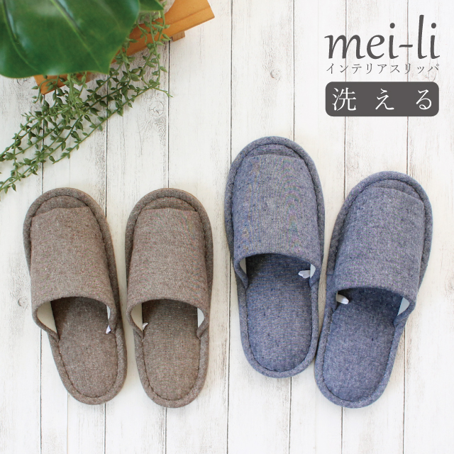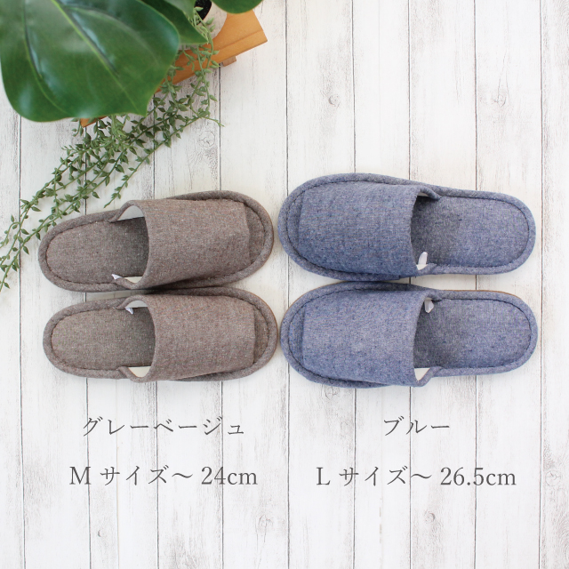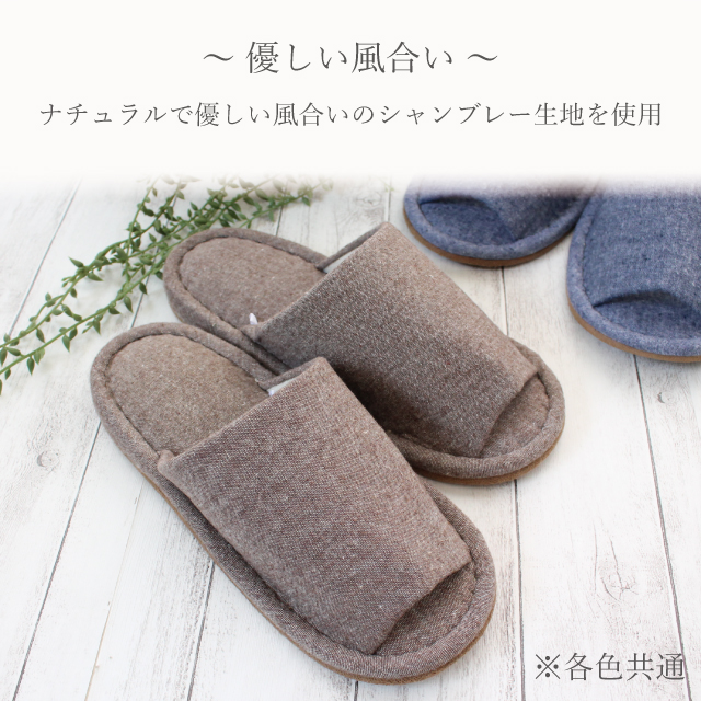 スリッパ 2足セット 洗える 来客用 シャンブレー生地 リビングスリッパ M/Lsize 送料無料