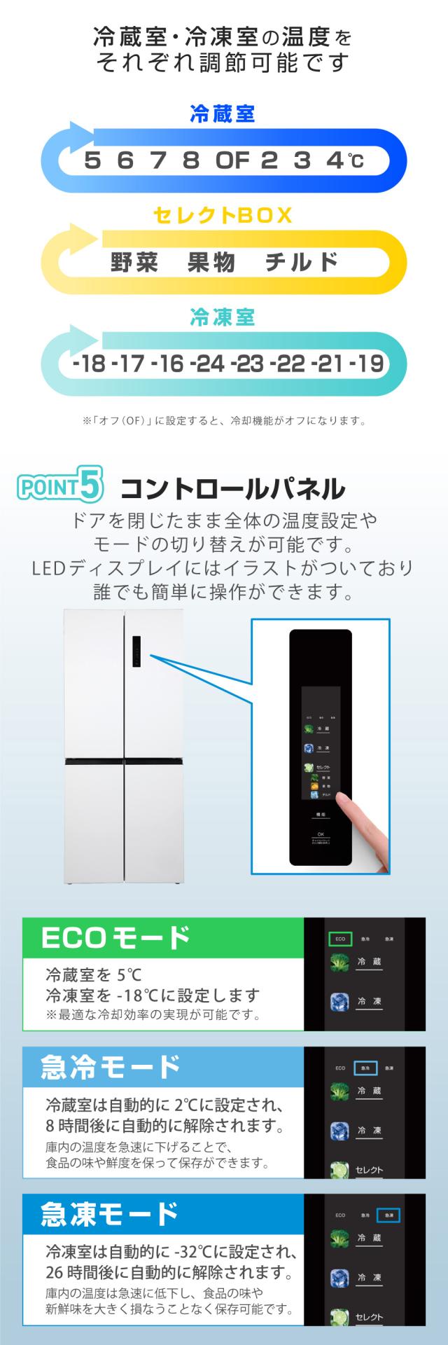ドアを閉じたまま全体の温度設定やモードの切り替えが可能です。