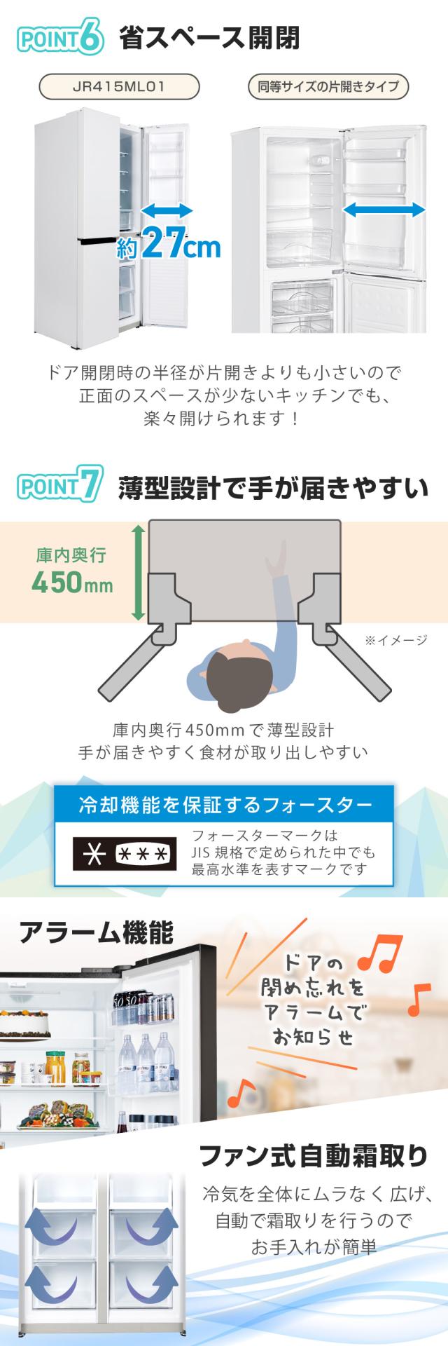 * 定格内容積:415L(冷蔵室:267L 冷凍室:148L)