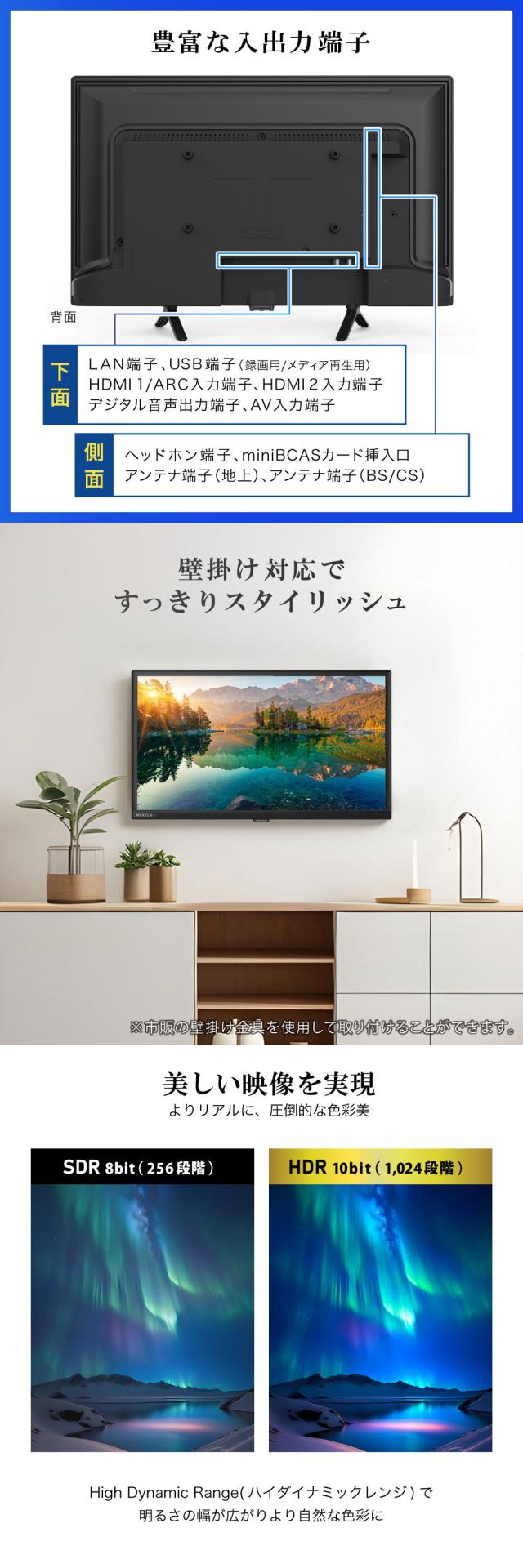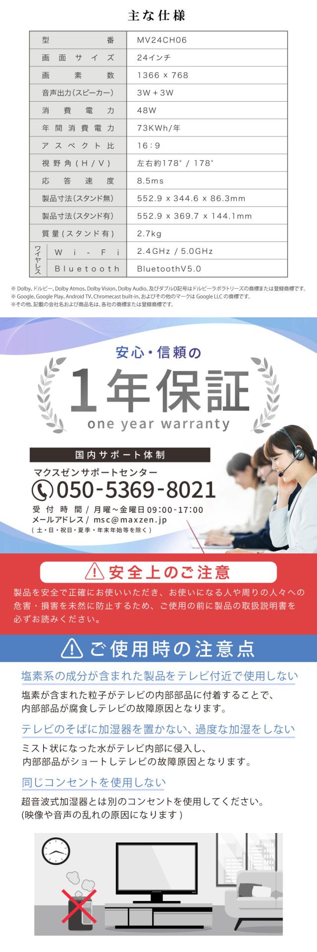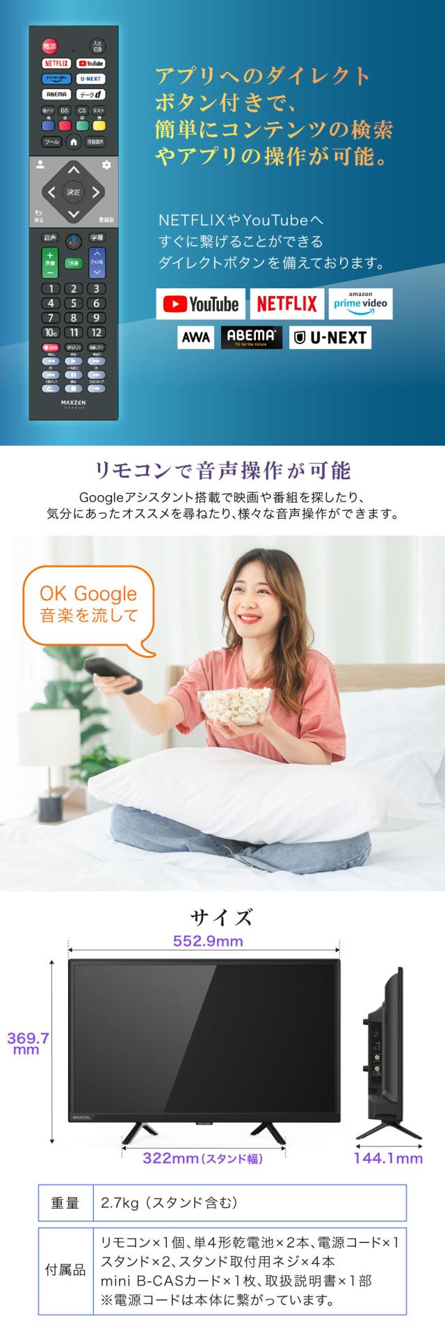 テレビ 24型 Googleテレビ 24インチ グーグルテレビ 24V 地上・BS・110度CSデジタル 外付けHDD録画機能 HDMI2系統 HDRパネル Youtube Netflix AmazonPrimeVideo Abema U-NEXT 視聴可能 MV24CH06 マクスゼン