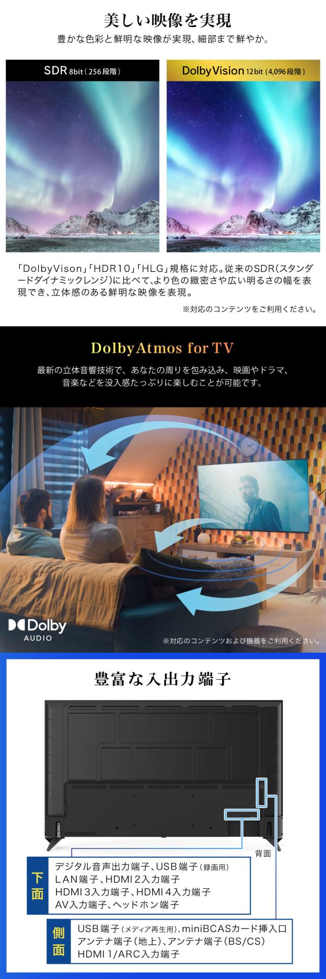 「DolbyVision」「HDR10」「HLG」規格に対応。
