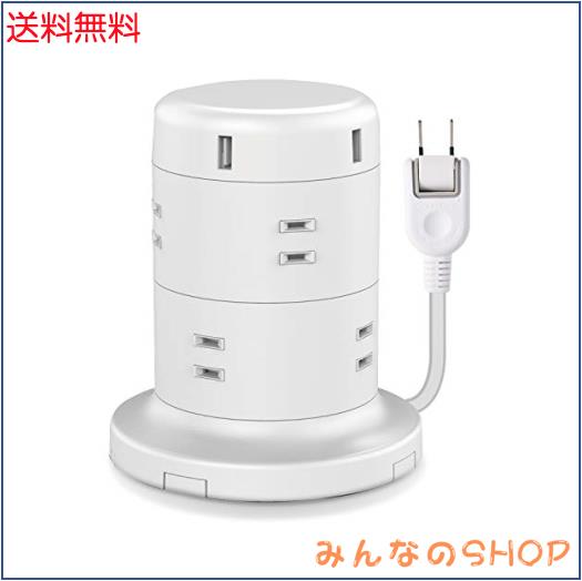 ◆商品名:エレコム 電源タップ タワー型 延長コード 8個口 [ USB×5ポート ] [USB-C×2ポート&USB×3ポート] [USBなし・トレー付] 固定パーツ付 雷