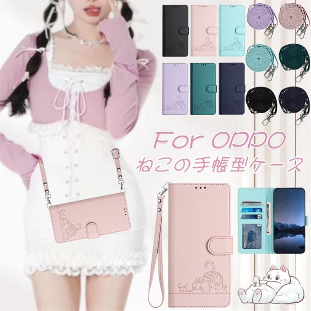 ねこ 猫柄手帳型ケース OPPO A79 ケース Reno9A 手帳型 ショルダー OPPO Reno10 Proケースース OPPO Reno9 A携帯ケース ベルトなし OPPO A77スマホカバー OPPO A54 5Gショルダーストラップ CPH2523 カード収納 おしゃれ かんたん ネコ手帳型ケース 落下防止 オッポケース