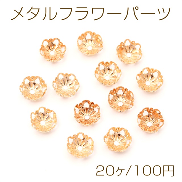 メタルフラワーパーツ ビーズキャップ 透かし花座 座金 鉄製 中心通し穴あり ゴールド 約8mm(20ヶ)