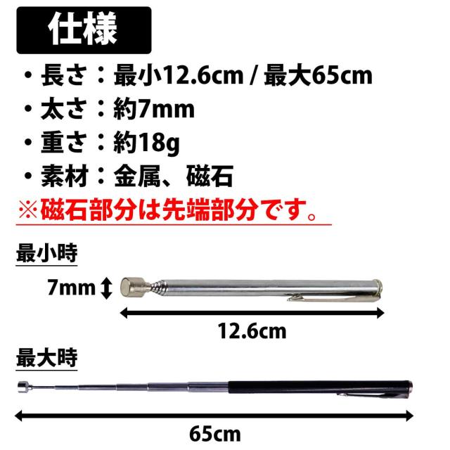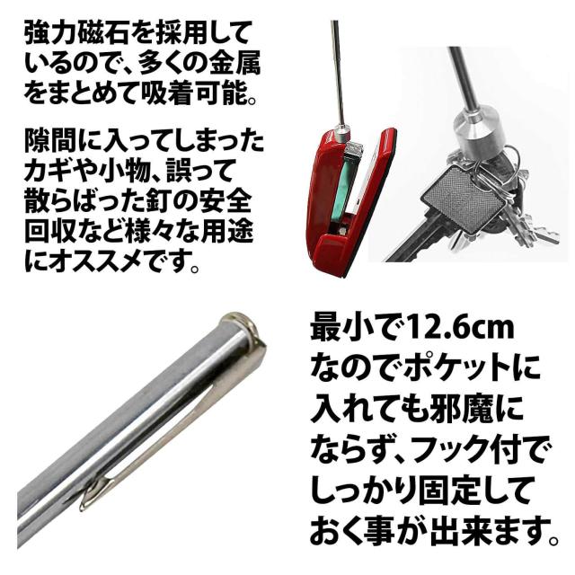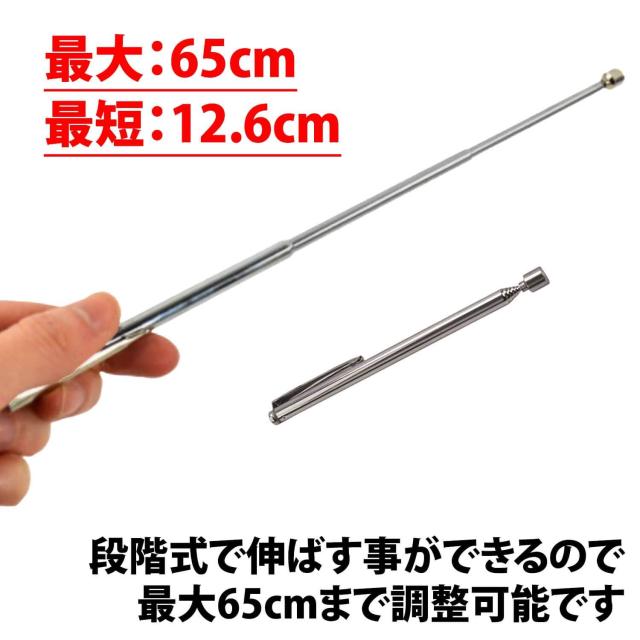 伸縮可能 段階 伸ばし 12.6cm 126mm 650mm 7mm 事務用品 強力キャッチ マジックハンド 文房具 針 ピン ペンシル型 マグピック 棒磁石 掃除 ゴミ ゴミ集め 隙間用具 スキマ 異物検査 家具