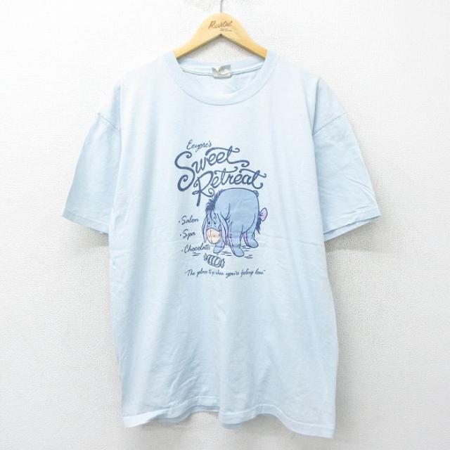 【商品名】 XL★古着 半袖 ビンテージ Tシャツ メンズ 00年代 00s ディズニー くまのプーさん イーヨー ラメ 大きいサイズ コットン クルーネック 水色