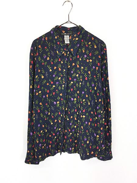 レディース 古着 SAG HARBOR カラフル 花 フラワー 総柄 レーヨン 長袖 シャツ XL位 古着