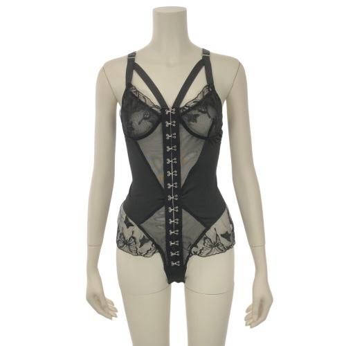 【グラシア】 テディ インナー ナイトウェア レディース セクシー ランジェリー 下着 クール クロッチ フリル 蝶 ニーハイ レース ブラック Mサイズ