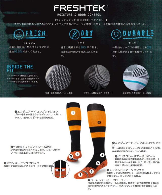 スタンス ソックス 野球専用ソックス メンズ ストッキング 野球 靴下 A759A23STR MLB公認 筋肉サポート 疲労軽減 快適 ゆうパケット対応