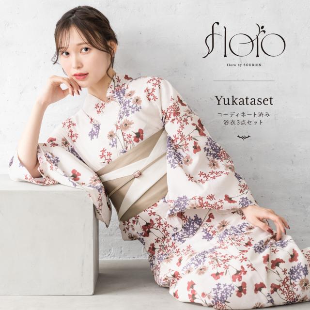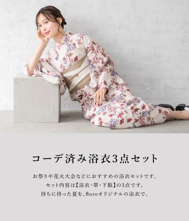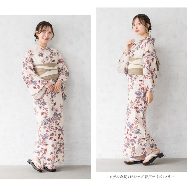 浴衣 セット レディース 浴衣セット 半幅帯 2026 大人 3点セット モダン ベージュ 赤 花 ポリエステル Sサイズ フリーサイズ 送料無料