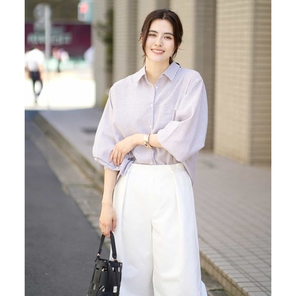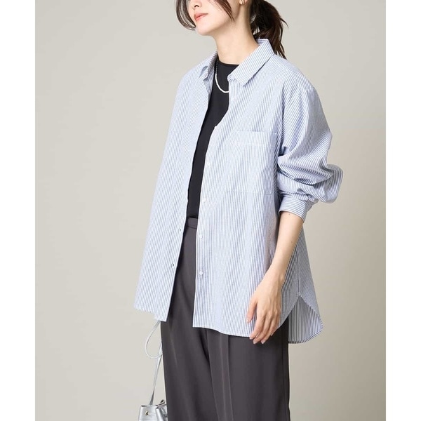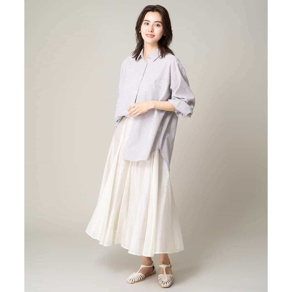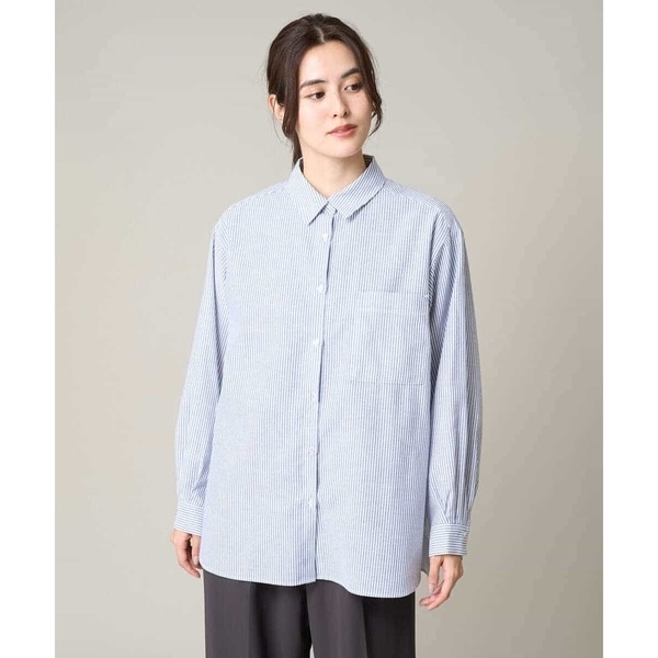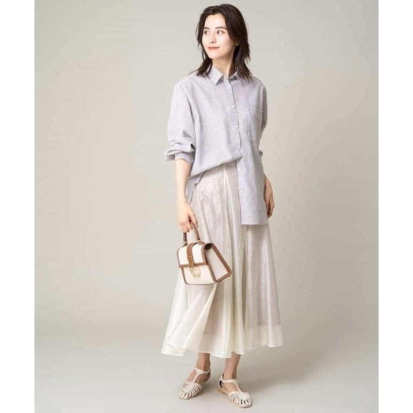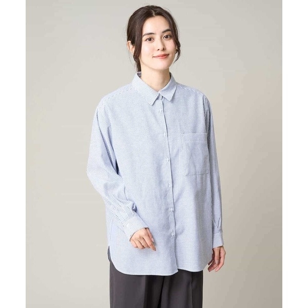 ・程良いオーバーサイズのリネン混ベーシックシャツ