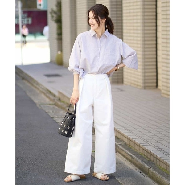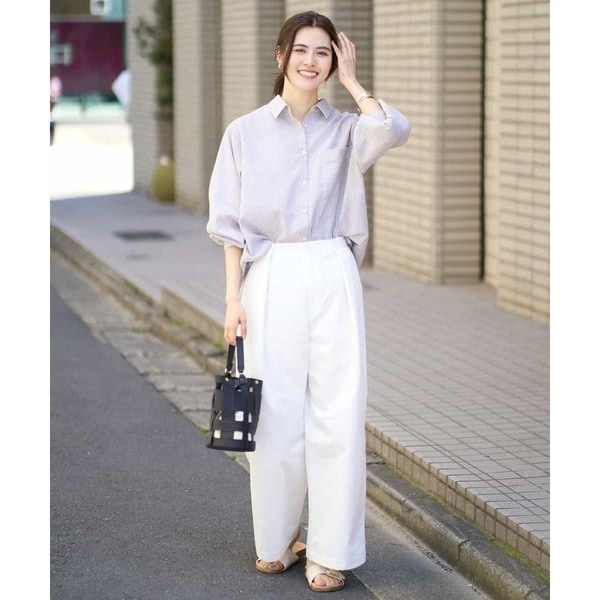 ・リネンとポリエステルを掛け合わせた素材で、清涼感のある一枚
