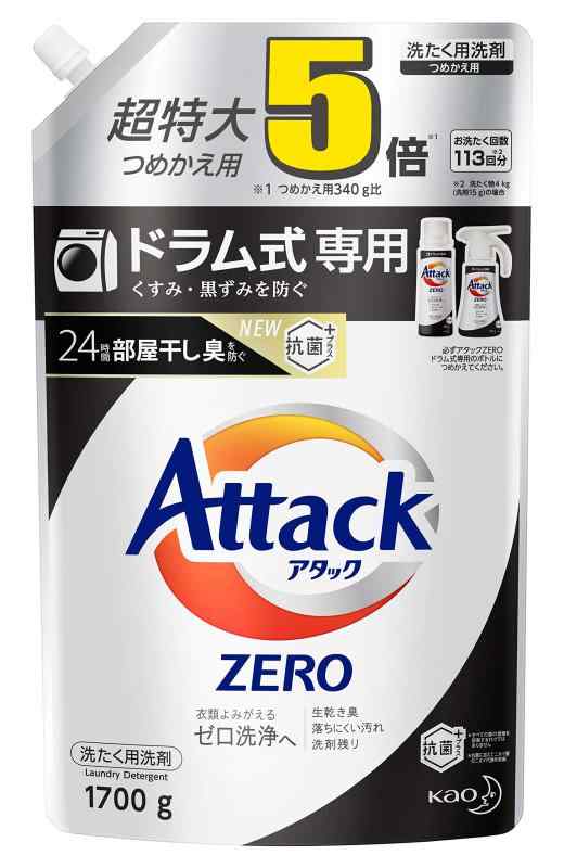 アタック ZERO(ゼロ) 洗濯洗剤 液体 ドラム式専用 (衣類よみがえる「ゼロ洗浄」へ) (詰め替え 1700g (約5倍分))