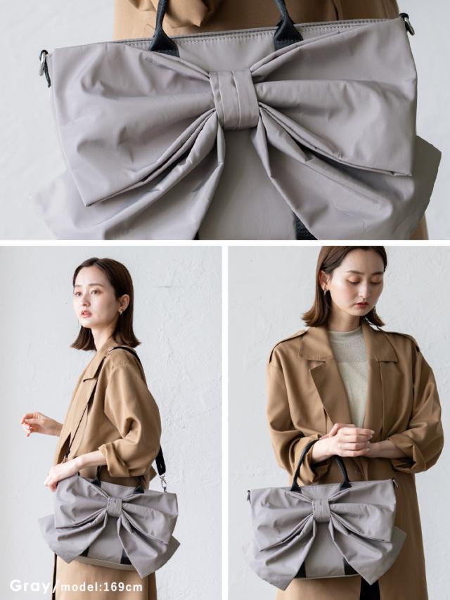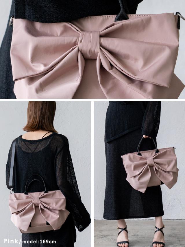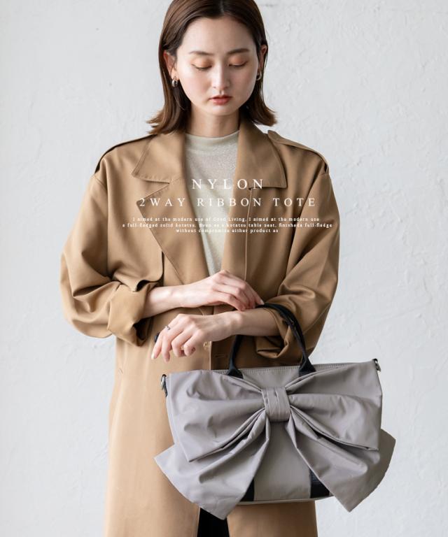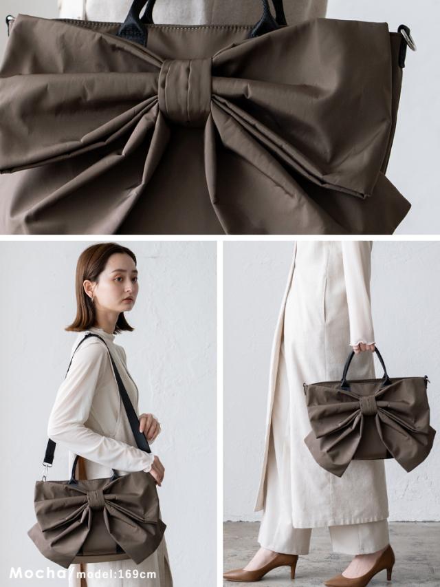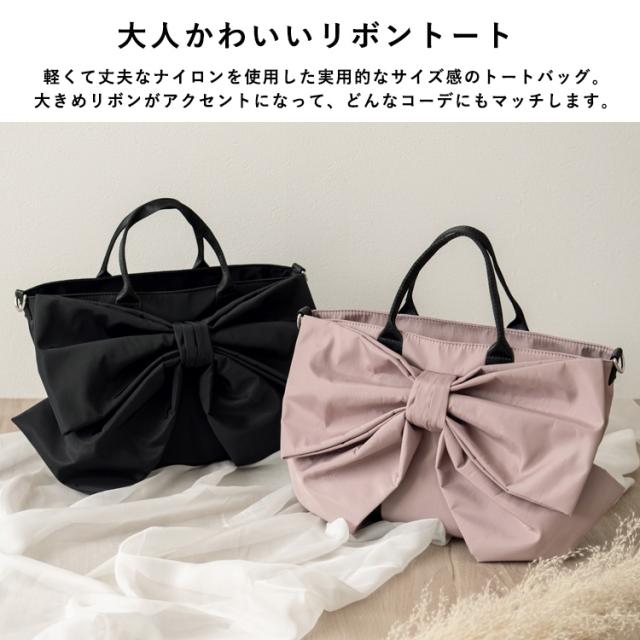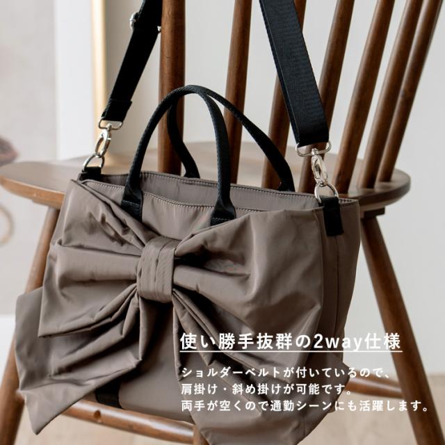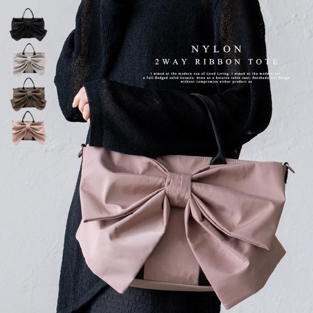 トートバッグ レディース 軽量 斜めがけ ナイロン リボン 通勤 通学 大容量 通勤バッグ 肩掛け 斜め掛け 2way 高密度ナイロン リボントートバッグ リボンバッグ 女性 上品 春夏 夏バッグ ubb-sp-0393 【aroco/アロコ】 プレゼント