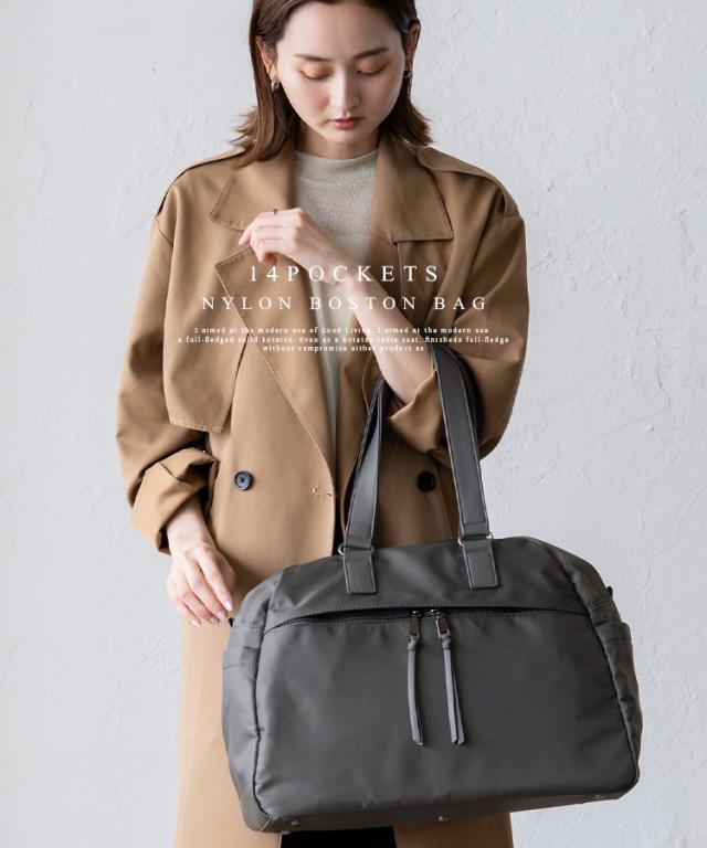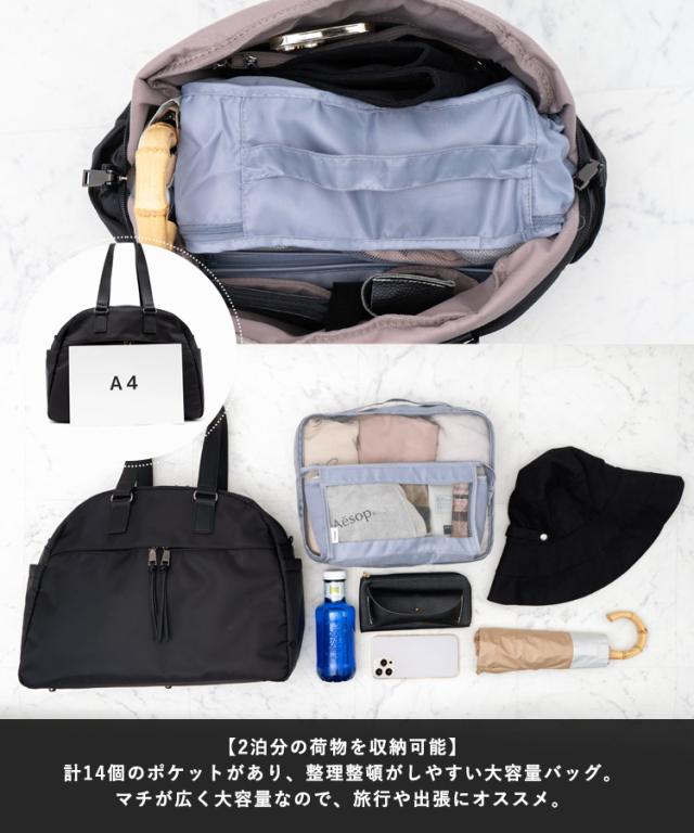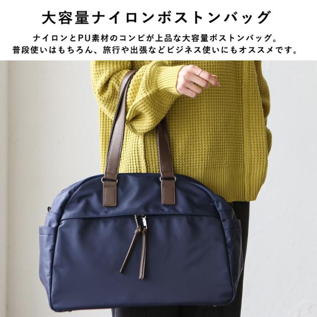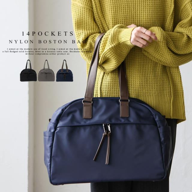 【14ポケット】 旅行バッグ 大容量 レディース ボストンバッグ 旅行 軽量 大きめ 多収納 ナイロン ダブルファスナー 軽い 大人 斜め掛け 1泊 2泊 肩掛け 撥水 旅行バッグ ユニセックス MIX素材 コンビ 春夏 夏バッグ inb-10145z 敬老の日 プレゼント【aroco/アロコ】