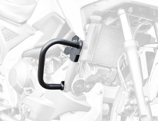 モデルチェンジ後のカウル形状とフレームの大きな変更に合わせながら、従来のスタイルと使い勝手を継承。 立ちゴケや軽度の点灯時に活躍するばかりでなく,フォグランプなどランプ類の設置にも活躍。