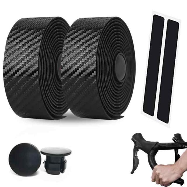 Doyime バーテープ ロードバイク 自転車 ハンドル テープ 滑り止め ドロップハンドル ハンドル バーテープ エンドプラグ付き EVA+PU製 左右セット ブラック