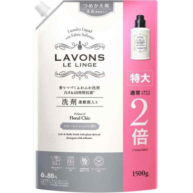 ラボン(Lavons) 柔軟剤入り 洗濯洗剤 フローラルシック 詰め替え 特大 1500g