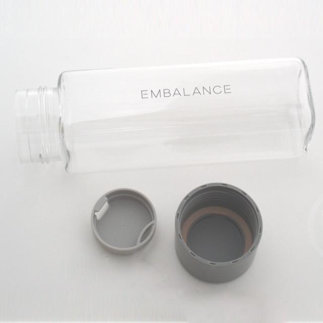 飲み物を入れるだけでまろやかに感じられるエンバランス加工されたウォーターボトルです。丈夫な素材でできており、軽量で持ち運びしやすいです。四角いフォルムなので、倒してしまっても転がる心配がなく、安心してお使いいただけます。