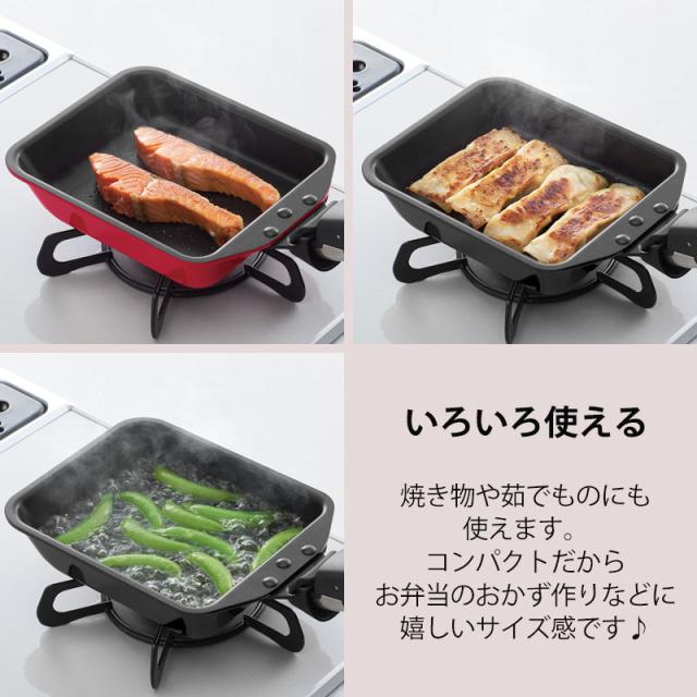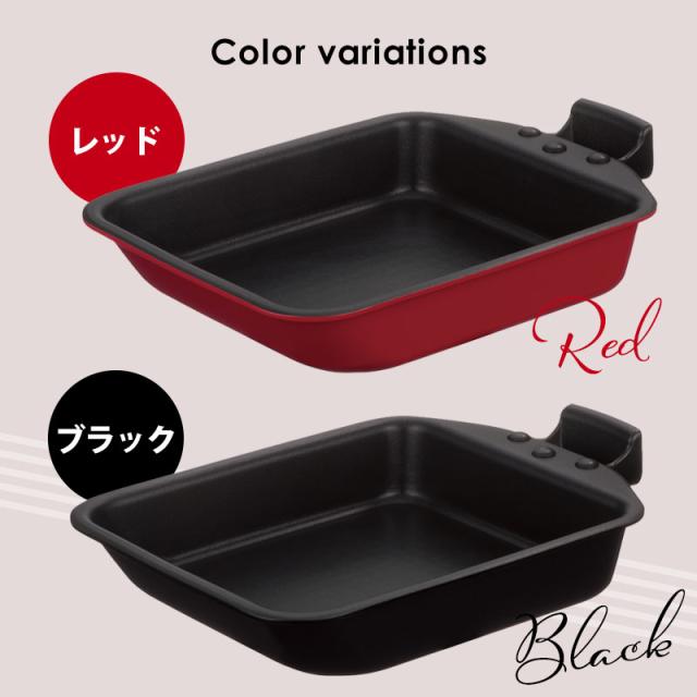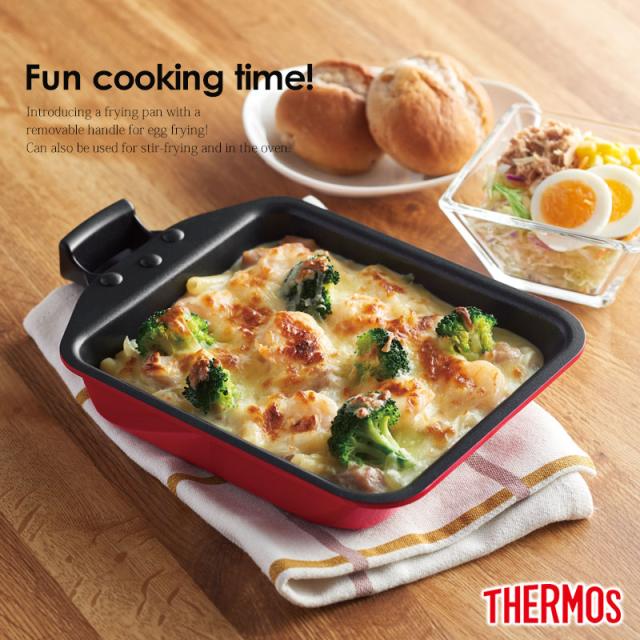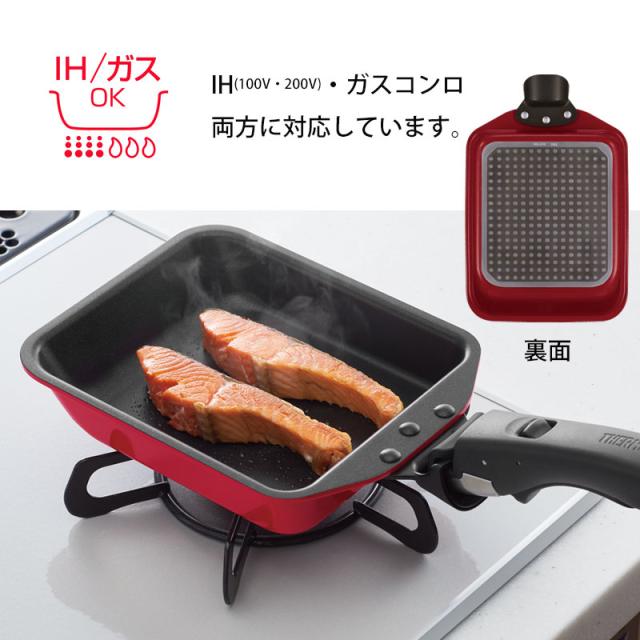 THERMOS サーモス 取っ手のとれる玉子焼きフライパン 玉子焼き器 IH&ガス火対応 オーブン対応 内寸15×18.5cm 卵焼き器 フライパン デュラブルシリーズ 着脱式 調理道具 取っ手が取れる レッド ブラック KEA-015 R BK