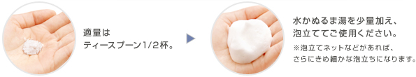 水溶けのよいサラサラパウダーで、クリーミィな泡が簡単に作れます。