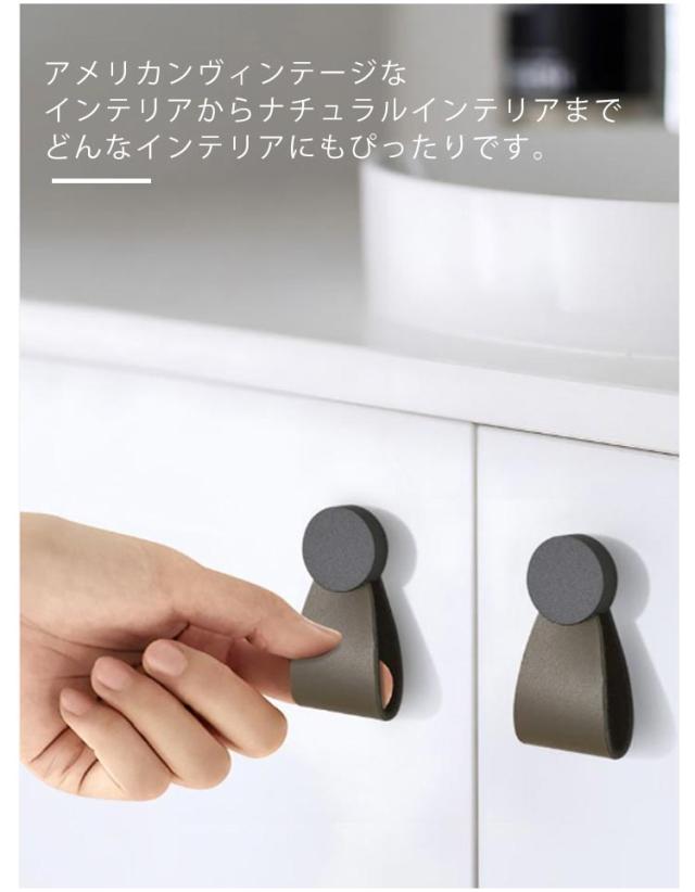 | 日常の中のさりげないアクセントになるようなレザーでかっこいいノブ。 かばんや小物アクセサリにも使用でき丈夫に作られた革製です。 アメリカンヴィンテージなインテリアからナチュラルインテリアまでどんなインテリアにもぴったりです。 チェストや引き出し、棚についている取っ手やつまみを取り替えるだけでかんたんにお部屋の雰囲気が変わります。 手持ちの家具の取っ手を付け替えるだけなら、DIY初心者さんや不器用さんでも気軽にトライできます。 | |