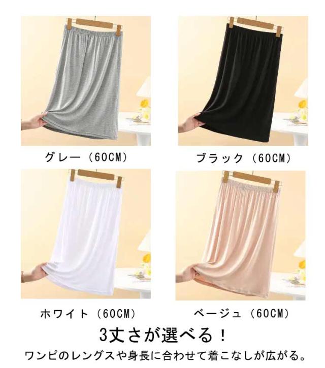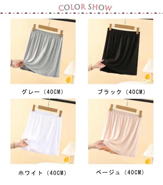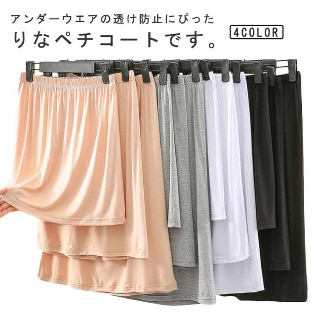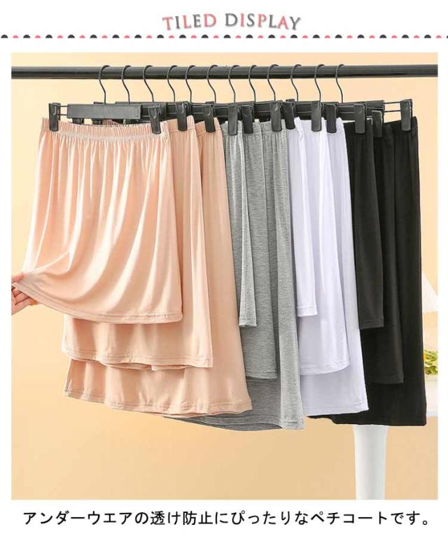 レディース ペチスカート 薄手 透け対策 50cm インナー 60cm 春夏 ペチコート ショート ロング丈 透けない 透け防止 下着 40cm シンプル 吸汗速乾 ウエストゴム インナースカート
