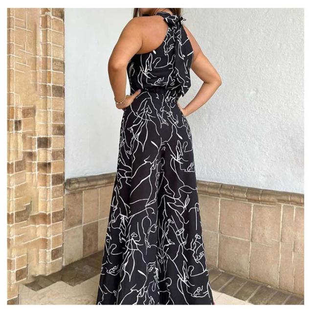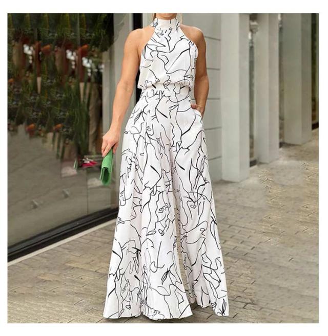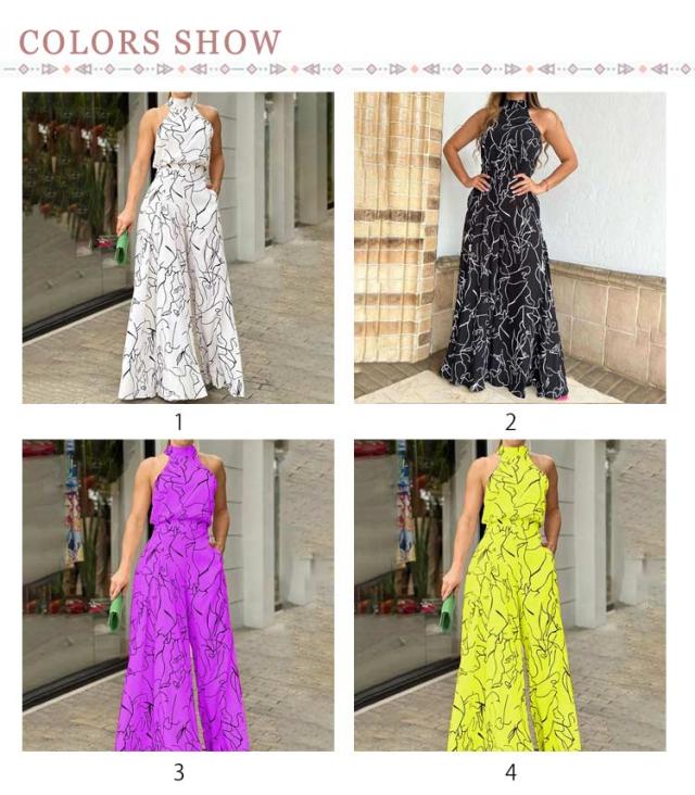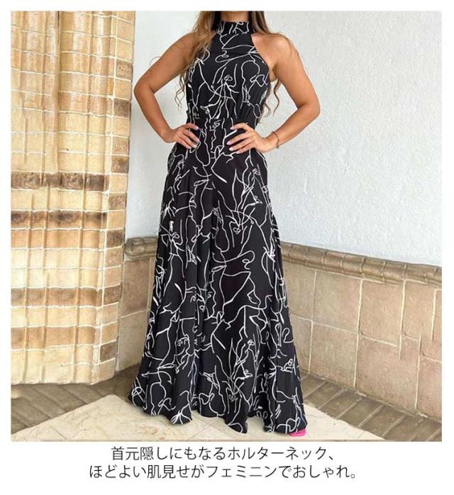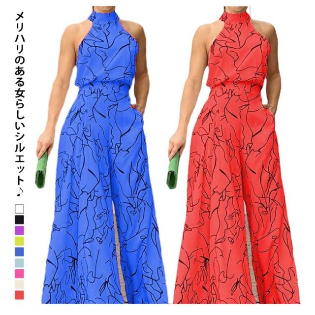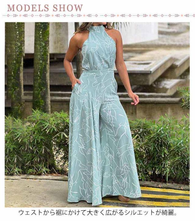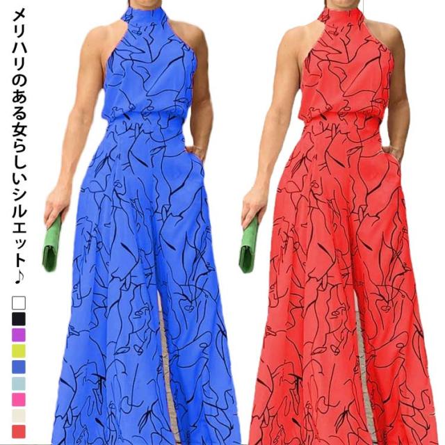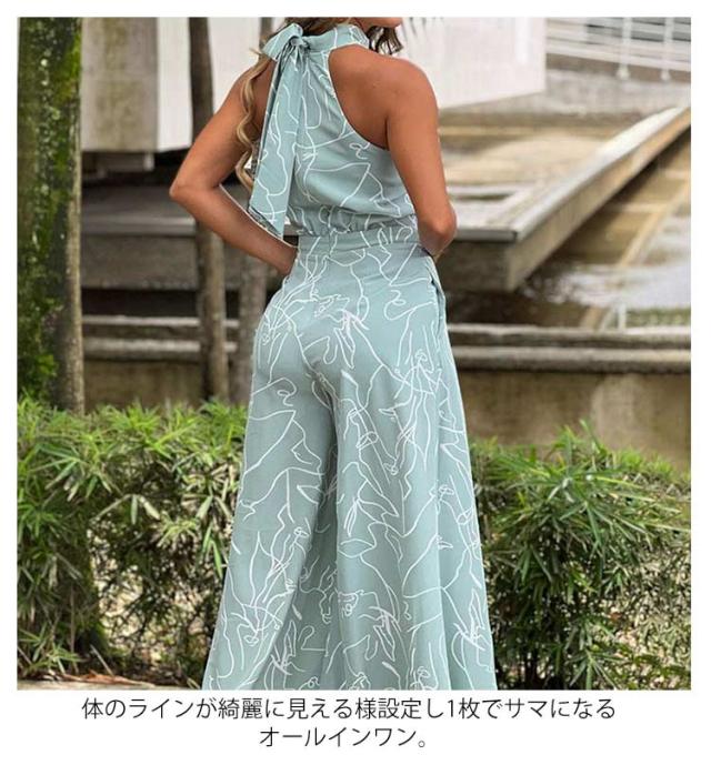 サロペ ホルターネック ハイネック つなぎ オールインワン 大きいサイズ コンビネゾン ワンピース ワイドパンツ 個性的 フェミニン きれいめ カジュアル ワンピース見えオールインワン ワイド パンツ ロング丈 夏 サロペット