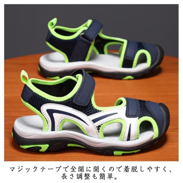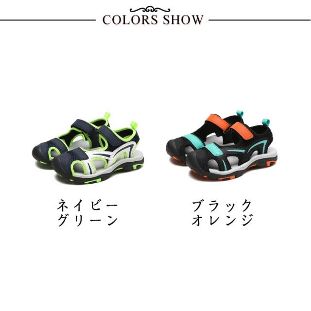 スポーツサンダル キッズ ビーチサンダル 男の子 メッシュ サンダル 子供 配色 川遊び 川 ウォーターシューズ キャンプ ボーイズ サンダル 小学生 つま先保護 滑りにくい 夏 海 プール 男児 ビーチ レジャー アウトドア 水場