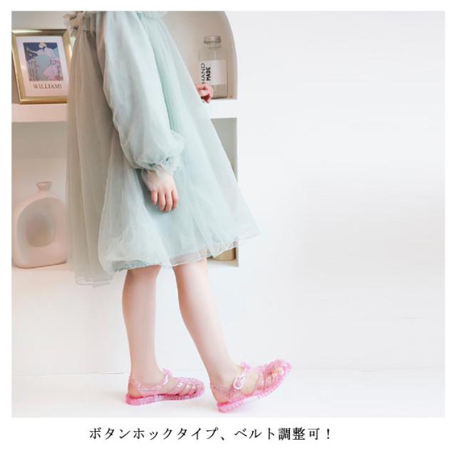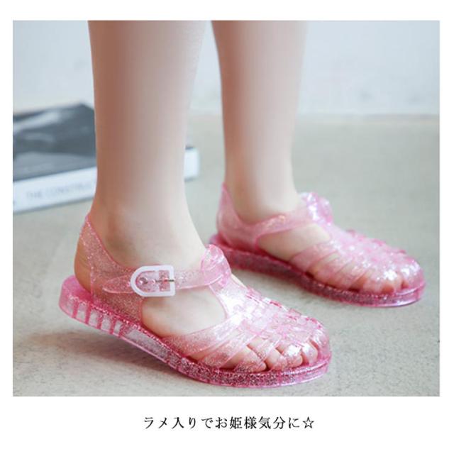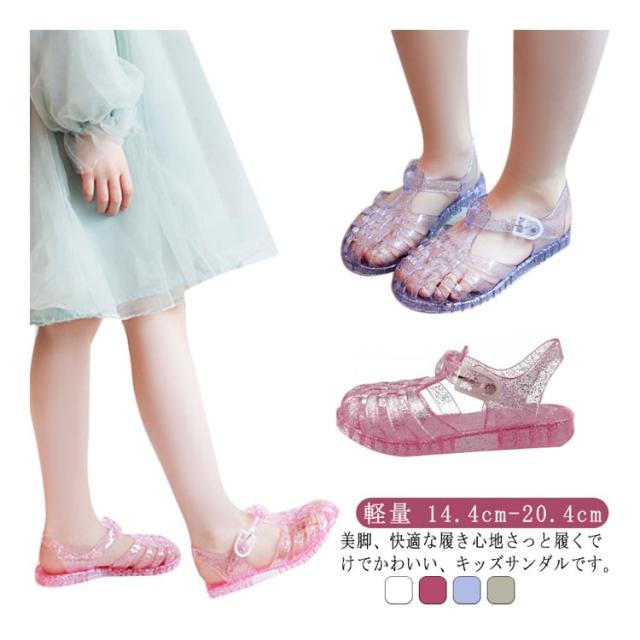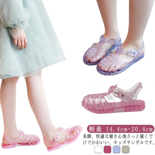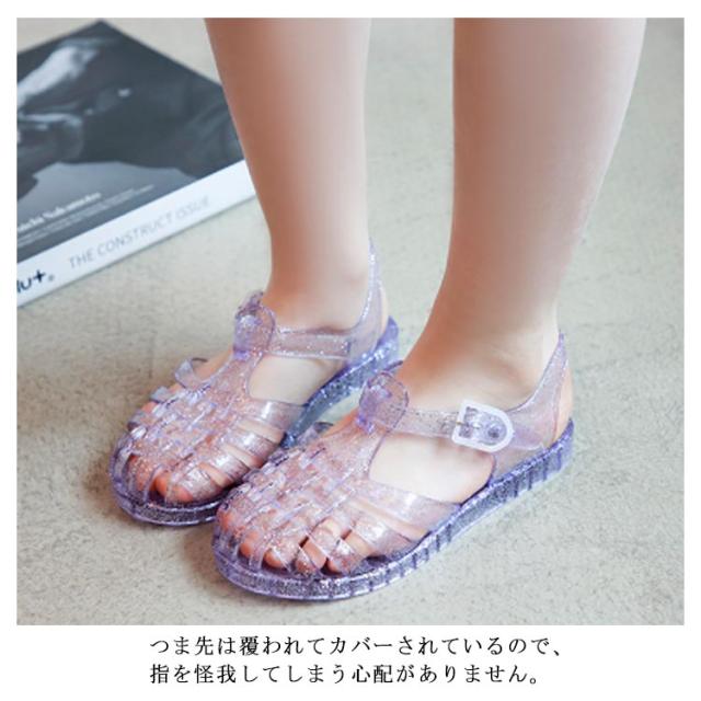| 美脚、快適な履き心地さっと履くでけでかわいい、キッズサンダルです。 ローヒールなので歩きやすく、また水に濡れても安心なので、急な雨の日やプールサイドでも活躍します。 ラメ入りでお姫様気分に☆ ボタンホックタイプ、ベルト調整可! つま先は覆われてカバーされているので、指を怪我してしまう心配がありません。 歩きやすさ抜群のキッズサンダルです。 | |