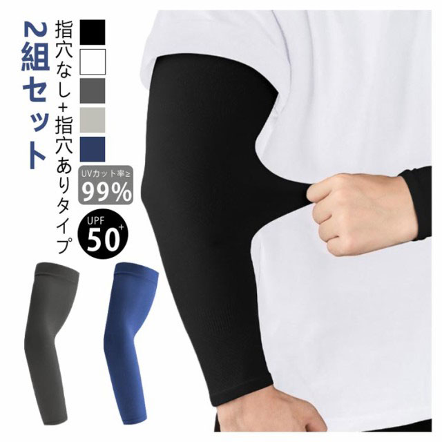 2組セット】 指穴付きアームカバー メンズ 大きいサイズ UV 日焼け対策 【指穴なし+指穴あり 接触冷感 アームカバー 男用 吸汗速乾 ゴルフ UPF50+ 冷感アームカバー スポーツ 自転車 【指穴なし+指穴あり アウトドア 紫外線対策