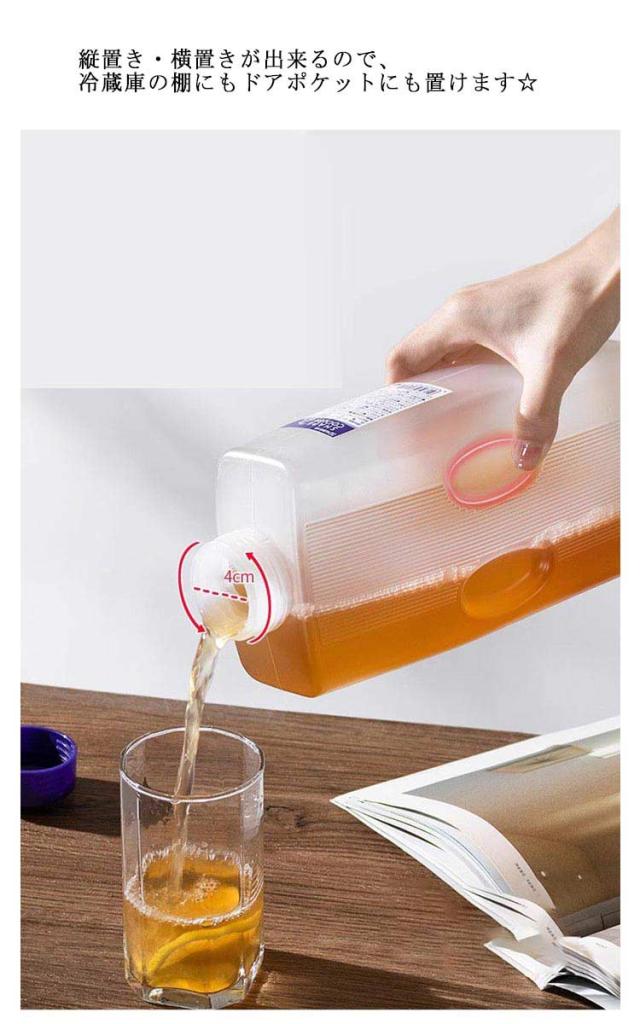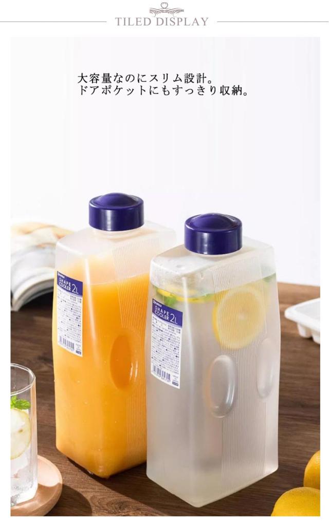 | 夏のファミリーにも最適、1度作ればたくさん飲める大容量冷水筒。 大容量なのにスリム設計。ドアポケットにもすっきり収納。 縦置き・横置きが出来るので、冷蔵庫の棚にもドアポケットにも置けます☆ 親指を添えやすい形状なので安定して注げます。中まで手を入れて洗えて清潔! 注ぎ口の水切れも良く、液だれしにくいので食卓や冷蔵庫を汚しません。 | |